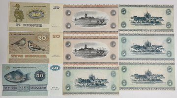 Danmark, Pengesedler. 5 kr. - 50 kr. 1954 -1979. (9)