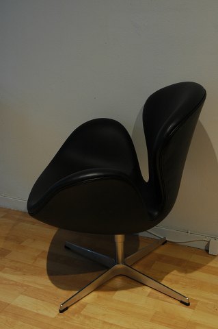 Arne Jacobsen (1902-71), Svanen, nyere stol 2005, betrukket med sort læder, fremstår som næsten ny. (1 af 2 fra samme hjem)