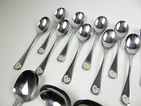 Rustfrit stål med marguerit-dekoration. Brugsspor.