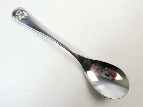 Rustfrit stål med marguerit-dekoration. Brugsspor.