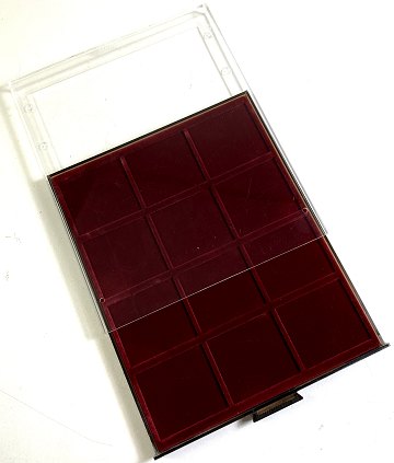 Leuchtturm møntboks med 12 fag til mønter eller medaljer med en diameter på op til 66 mm.