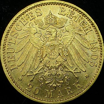 Tyskland, Sachsen, 20 mark 1905 'Friedrich August III', KM# 1265, GULD