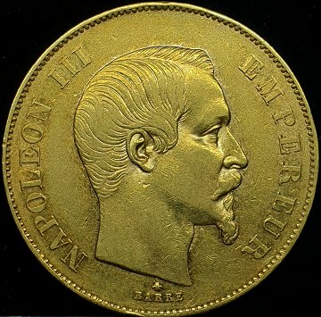 Frankrig, 50 francs 1855 BB 'Napoleon III', KM# 785, GULD