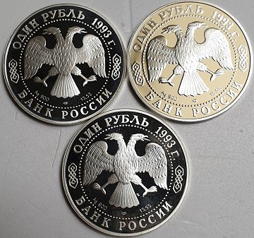 Rusland, 1 ruble 1993, 'Rød bog' sæt med 3 mønter, sølv