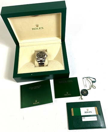 Uret kommer med inderboks, booklets, hangtags og certifikat fra anden måned 2018, stemplet i Harrods.