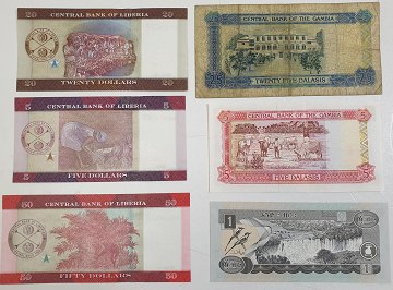 Liberia, Gambia og Etiopien - 1980-2017 - 6 pengesedler