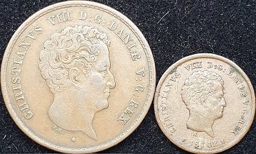 Danmark - 2 mønter - 1/5 R.B.S 1842 + 1 R.B.S 1842-VS - Christian VIII