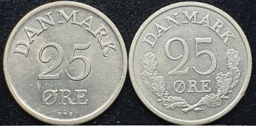 Danmark - 25 Øre 1950 + 1967 - Frederik IX - KM# 842/ KM# 850