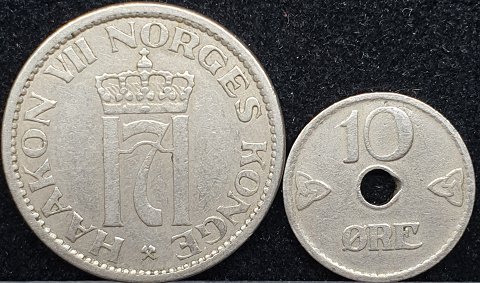 Norge - Haakon VII - 10 øre 1927 og 50 øre 1954 - KM# 383 og KM# 402