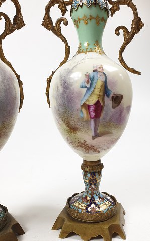 Par cloisonne messingvase med maleri på emalje - omkring 1900-1940