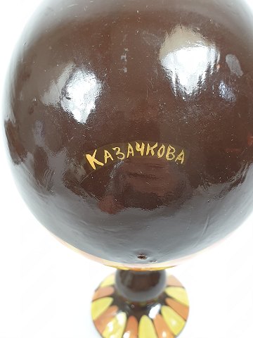 Pænt malet russisk æg af træ. 15 cm høj, med stativ: 23 cm