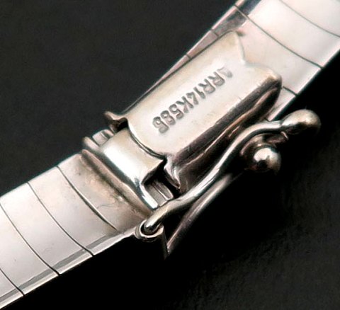 Collier af 14 kt. hvidguld, med halvmåneformede, tætsluttende led. L. ca. 46 cm., vægt ca. 33,5 gr.