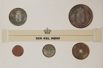 Møntsættet indeholder samtlige mønter i Danmarks møntserie præget i særlig høj kvalitet: 5- og 1-kr samt 25-, 10- og 5-øre.