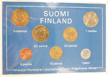 Et sæt finske mønter udstedt i 1976: