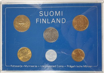 5p, 10p, 20p, 50p 1mk og 5 mk.