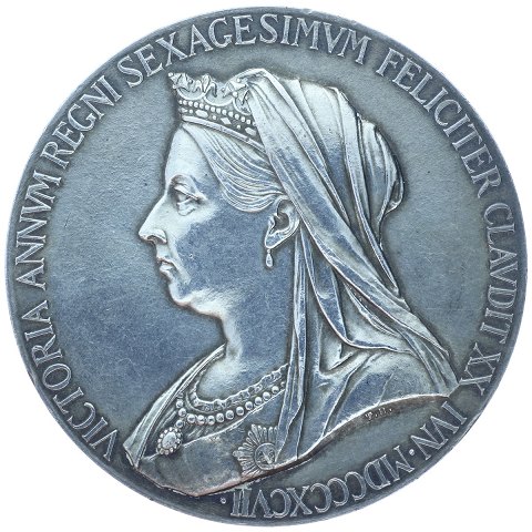 Medaille af sølv *Dronning Victoria's 60 års regeringsjubilæum 1837 - 1897*. Diameter 55 mm., vægt 86 gr.