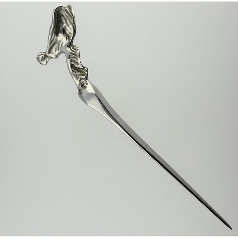 Papirkniv, fremstillet som gave for købere af en Rolls Royce Mulsanne eller en Bentley Mulsanne ved udgivelsen af begge modeller i oktober 1980. L inkl. Silver Spirit figur 20,5 cm. Inskription på den ene side *Rolls Royce Mulsanne October 1980* revers *Bentley Mulsanne October 1980*