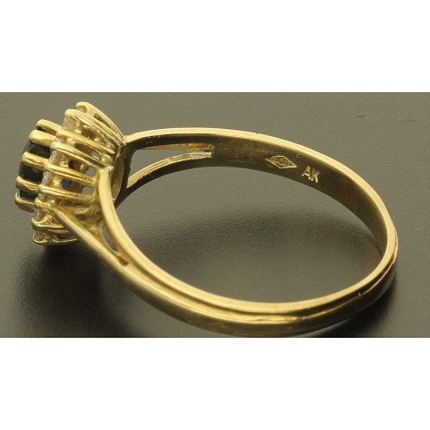 Ring af 14 kt guld - med ca. 0.40 ct blå safir og ca. 0.20 ct diamanter