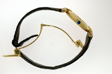 Cartier dameur, Must de Cartier, i kasse af forgyldt sølv guld med originalt spænde gulddouble, safir på kronen, leveres med original kasse, meget flot stand, men skal have nyt batteri.
