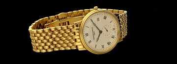Uret har en 39mm kasse udført i guldbelagt stål. Kassen er monteret på en original Frederique Constant lænke, ligeledes udført i guldbelagt stål. Urets smukke guilloché skive byder på datovindue, small seconds og ikke mindst de matte romertal, som grænser op til de flotte minut-indekseringer i form af streg-indeks. Uret er udstyret med FC-245 Quartz værk.