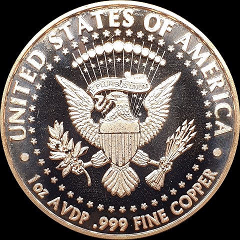 1 ounce 28,34 gr .999 fint kobber. Proof Like kvalitet - uden kemiske belægninger af nogen art.
