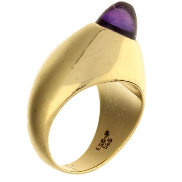 Fingerring af 14kt. guld, prydet med ametyst sten.