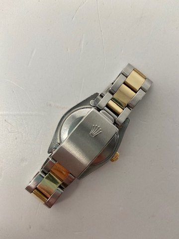 Midsizeur fra Rolex, model Oyster Perpetual Datejust, ref.nr.: 6827, i kasse og m. oysterlænke af 18 kt. guld og stål, sølvfarvet skive m. stregindeks, datoangivelse ved 3" position, guldlynette m. riflet kant, plexiglas, automatisk urværk. Fra 1978. Ø. 30 mm.