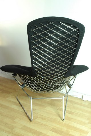 Harry Bertoia 1915-78, Bird stol med skammel (såkaldt ottoman), begge betrukket med sort uld. Fremstår som næsten ny.