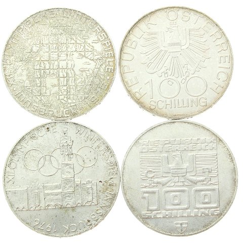 Østrig - 100 schilling 1976 og 1979 - 4 mønter - ca. 97 gram