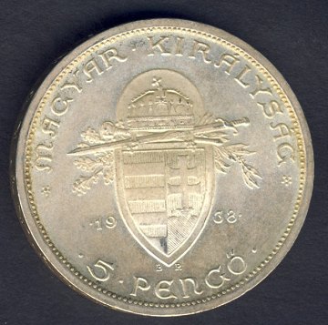 Ungarn, 5 pengo SØLV 1938 - KM 516