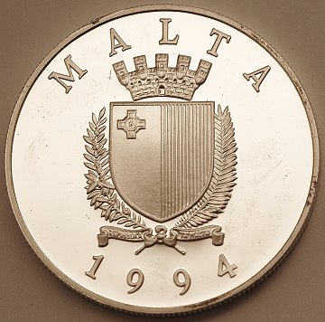 Malta, 5 liri SØLV 1994 Proof - KM 108 *Valletta*