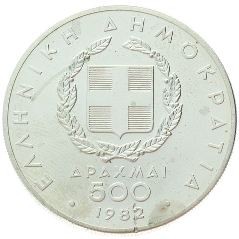 Grækenland - 500 drachmai 1982 - Pan-europæiske spil - sølv - KM# 139