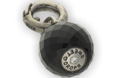 Vedhæng i form af facetteret sort onyx med øsken, låsering samt bund af rhodineret sterling sølv.