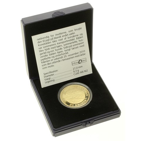 Margrethe II, 20 kroner 2010 PROOF - "Kajak-Konebåd"