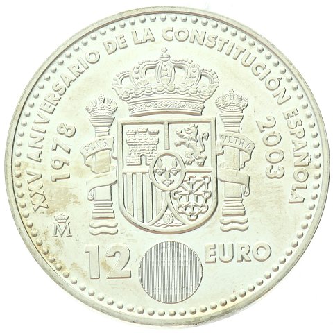 Spanien - 12 euro 2003 - Juan Carlos I - Forfatning - sølv - KM# 1051