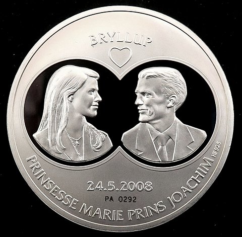 Medaille, designet af kunstneren Graszyna Lindau til erindring om Prinsesse Marie og Prins Joakims bryllup i 2008 og Kronprins Frederiks 40 års fødselsdag samme år. 24 gr. sterling sølv, diameter 40 mm. Nummereret og limiteret til 5000 eksemplarer.