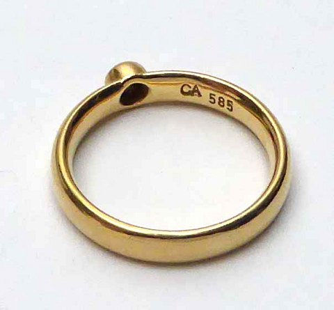 Ring af 14 kt. guld, prydet med brillant 0,10 ct., Str. 53½, samlet vægt ca, 5 gr.