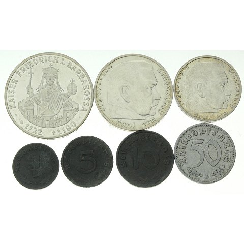 Tyskland - 7 mønter - 1936-1990 - med 3 sølvmønter