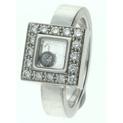 Med kasse og certifikat. 0.750 hvidguld. 17 brillanter, totalvægt 0.38ct