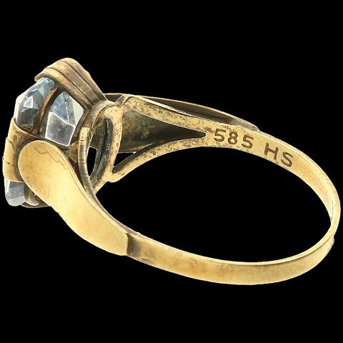 Ring af guld 14kt. fattet blå sten