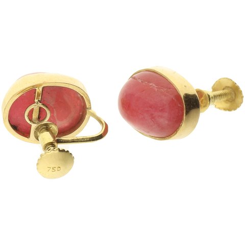 Par øreskruer af guld 18kt. fattet med rød sten.