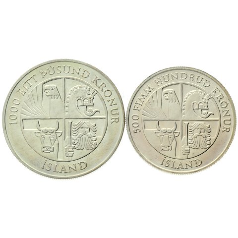 Island - 500 og 1000 kronur - 1974 - 1000 års jubilæum - sølv