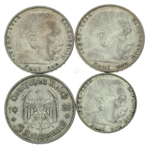 Tyskland - 5 og 2 reichsmark - 1935-38 - 4 sølvmønter