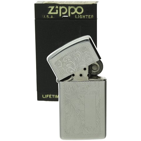 Zippo Slim Lighter af blankpoleret stål.