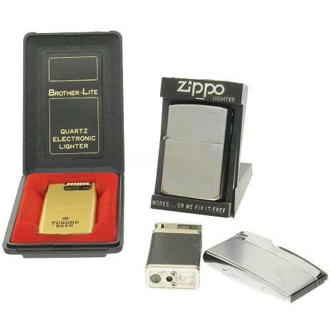 lot bestående af 4 lightere, heriblandt en interessant Tuborg lighter.