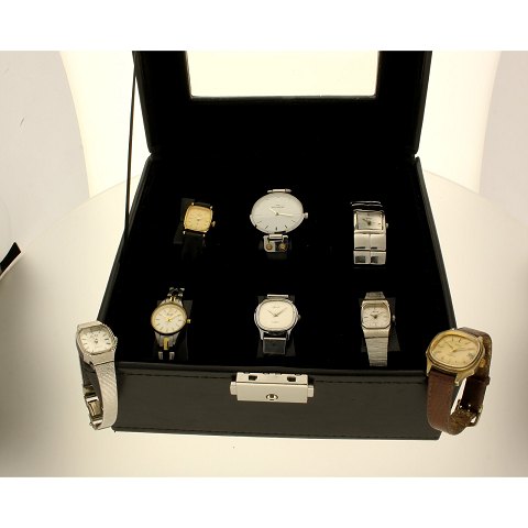 Lot bestående af 8 damearmbåndsure samt en urkasse