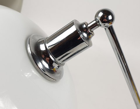 Poul Henningsen, PH 2/1 bordlampe med skærme af hvidt opalina glas, fod og arm af forkromet metal. Afbryder i kontravægten. Fremstillet hos Louis Poulsen. H. ca. 36 cm., L. ca. 50 cm.