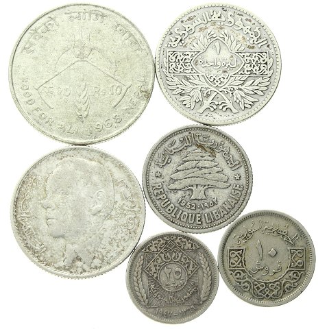 Syria: 1 lira 1950, 25 qirsh 1947, 10 qirsh 1956.