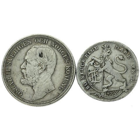 Sverige og Tyskland - 2 kronor 1904 + 1/6 thaler 1769 Hesse-Cassel øn- 2 sølvmønter