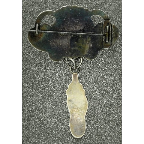 Broche af sølv med månesten - Art Nouveau - 7.5 cm